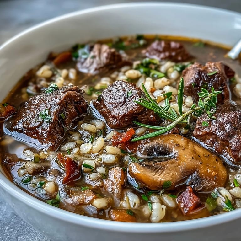 Save The smell of browning beef and pancetta hit me one Sunday afternoon when I was trying to use up ingredients before a snowstorm rolled in. I had a chunk of beef chuck, some mushrooms that needed attention, and a bag of barley I'd bought months ago with good intentions. What started as pantry roulette turned into the kind of soup that makes you forget about the weather outside. It simmered away while I read a book, filling the kitchen with earthy, smoky warmth that felt like the best kind of accident.