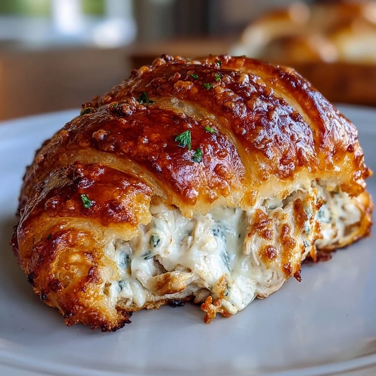 Save Imagine a cozy family dinner where everyone gathers around the table for something warm, cheesy, and utterly satisfying. These Decadent Chicken Pillows are the ultimate comfort food, combining a rich chicken and cream cheese filling with the buttery crunch of golden crescent dough. Finished with a savory garlic Parmesan glaze, they offer a gourmet twist on a simple kitchen favorite.