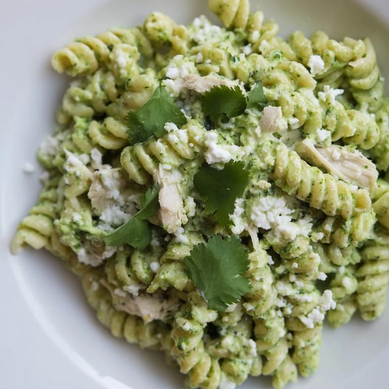 - Dump the drained pasta and shredded chicken into a large bowl, then pour that gorgeous sauce over everything. Toss gently but thoroughly until every single piece is coated in that lime cilantro goodness.