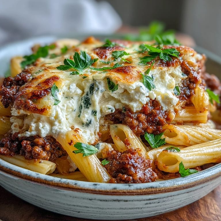 This bake is endlessly adaptable. I've swapped ground beef for ground turkey or chicken when I wanted something lighter, and the flavors stayed rich and satisfying. Adding two cups of fresh spinach or diced bell peppers during the sauce-building step sneaks in extra vegetables without changing the texture. If you're cooking for someone with gluten sensitivity, gluten-free pasta works beautifully here, and I've never had a guest notice the difference.