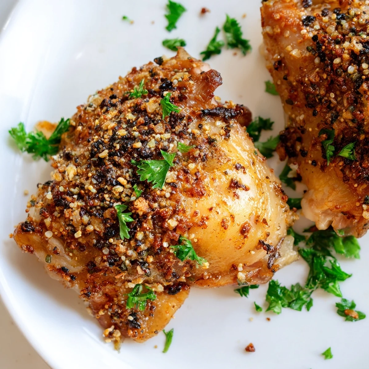 These thighs pair beautifully with anything that can soak up the rendered fat and garlic flavor from the pan—roasted root vegetables, rice, or a simple green salad all work. I've also served them cold the next day straight from the fridge, which sounds weird until you taste the concentrated garlic and crispy skin together. Some nights I skip sides entirely and just eat them with my hands and lemon.