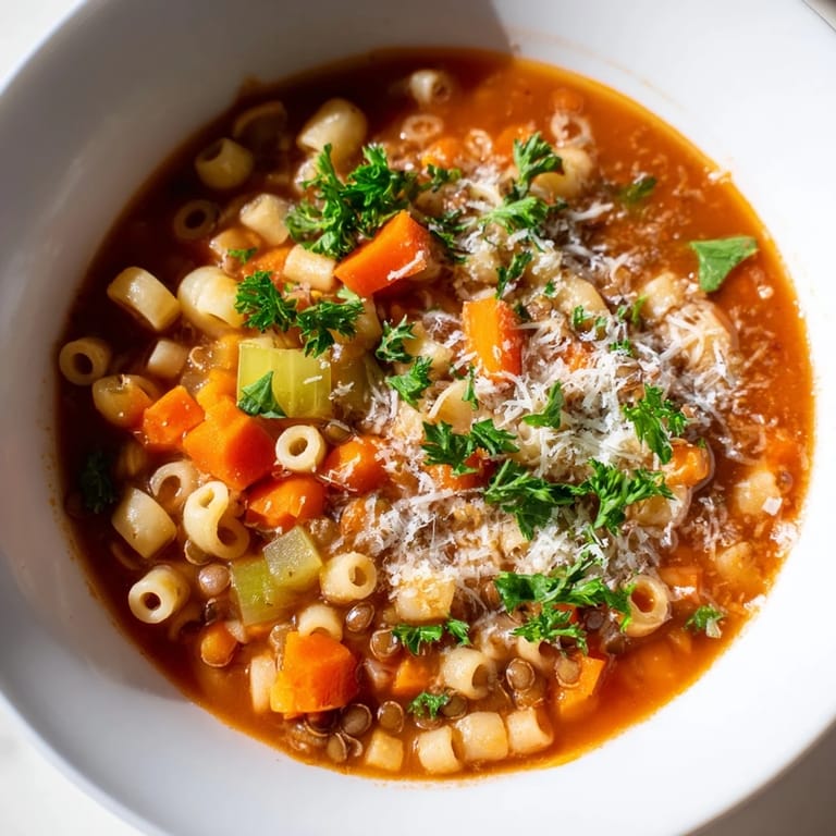 Save I threw this together on a rainy Tuesday when the fridge was nearly empty and my wallet even emptier. A half-bag of lentils, some pasta from the back of the cupboard, and a lonely can of tomatoes turned into the kind of soup that made me forget I was technically broke. The steam fogged up my kitchen window while the broth bubbled away, filling the apartment with a smell so good my neighbor texted asking what I was cooking.