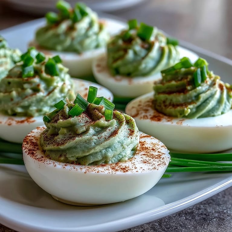 Save There is something wonderfully nostalgic about deviled eggs—those little bites of creamy, tangy filling nestled in smooth egg white cups that appear at every gathering and disappear just as fast. But what happens when you give a classic a vibrant, modern makeover? You get Green Deviled Eggs with Avocado Filling: a dish that turns heads with its striking color and wins hearts with its rich, buttery flavor. By swapping the traditional yolk-only filling for a luscious blend of ripe avocado and egg yolks, these deviled eggs become something truly special—equally at home on a party platter or as a wholesome afternoon snack. Ready in just 27 minutes, they are as easy to make as they are impressive to serve.