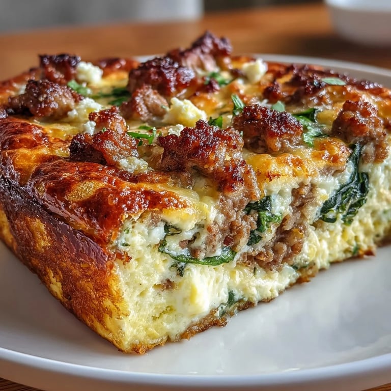 To ensure your breakfast bake has the best texture, be sure to brown the sausage thoroughly and drain any excess fat if needed before mixing it with the eggs. Letting the cooked meat and spinach cool for a few minutes before combining with the egg mixture prevents the eggs from scrambling prematurely.