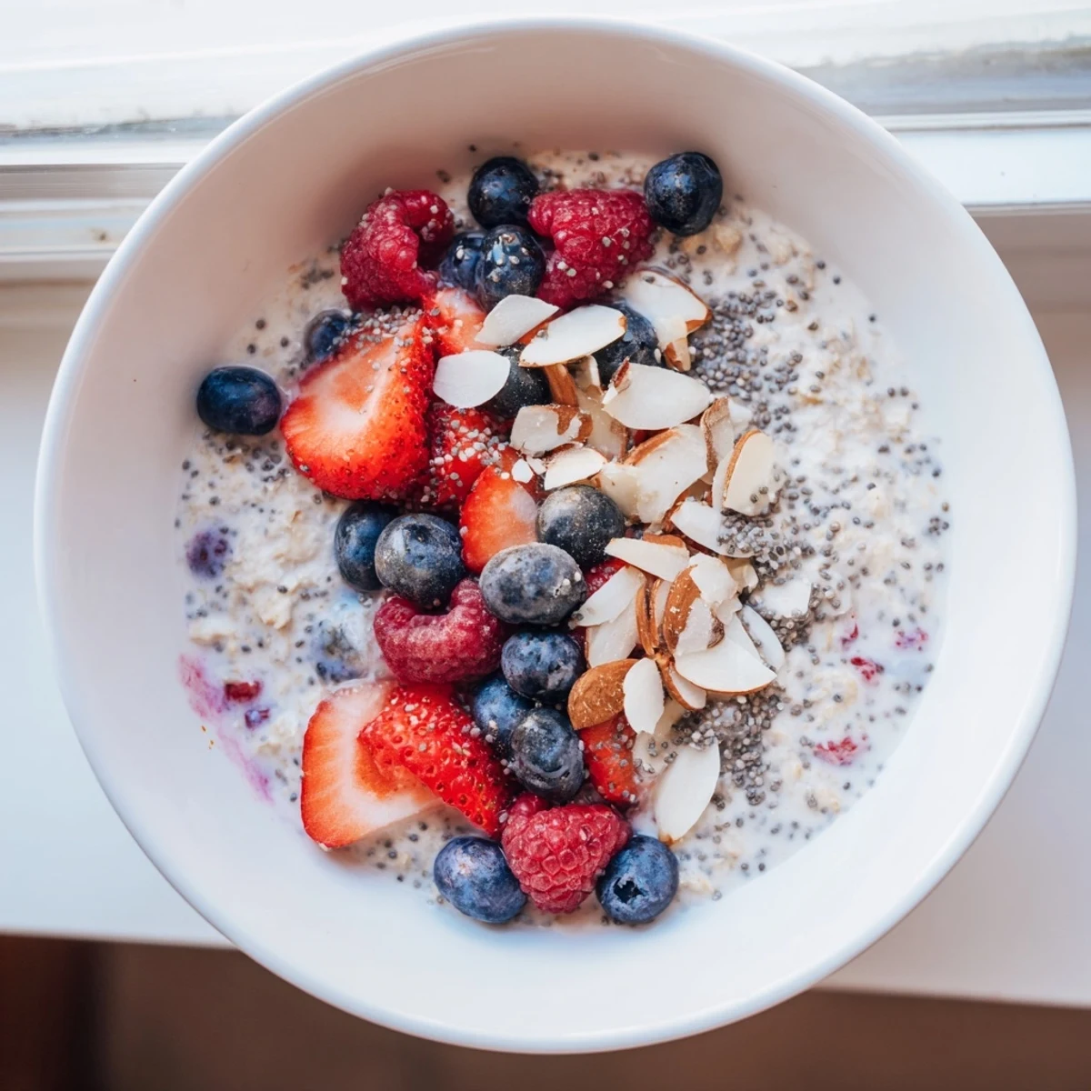 Save A wholesome and creamy make-ahead breakfast featuring nutrient-rich oats, chia seeds, and a medley of fresh berries for a delicious and energizing start to your day.