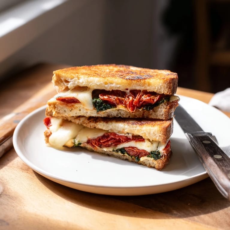 Save The smell of slow-roasting tomatoes filling my apartment on a rainy Sunday morning changed everything I thought I knew about grilled cheese. I had been experimenting with oven-dried tomatoes for a pasta dish when I realized how incredibly concentrated and sweet they became—almost like tomato candy. Naturally, my brain went straight to sandwich territory. That first bite, with the tangy roasted tomatoes cutting through the rich melted cheese and fragrant basil pesto, made me abandon regular grilled cheese forever. It's the sandwich that convinced my pesto-skeptical husband that basil and cheese belong together.