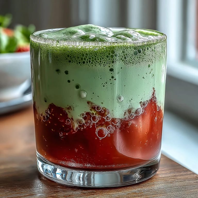 Presentation is everything with this stunning layered latte. Serve in tall, clear glasses to showcase the beautiful gradient of pink strawberry, vibrant green matcha, and creamy white foam. Garnish with a fresh strawberry slice on the rim, a light dusting of matcha powder on top of the foam, or even a few fresh mint leaves for an elegant touch. Pair this refreshing beverage with light breakfast pastries, granola bowls, or enjoy it as an afternoon pick-me-up alongside vegan cookies or energy balls. It's also perfect for brunch gatherings, where its Instagram-worthy appearance is sure to impress your guests.